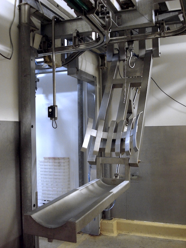 Il a été construit par notre société un pupitre pneumatique de fonctionnement automatique pour faciliter la séparation de l’aloyau du globe. Cet équipement est installé dans une salle de découpe en France, de haute capacité et plutôt robotisé.